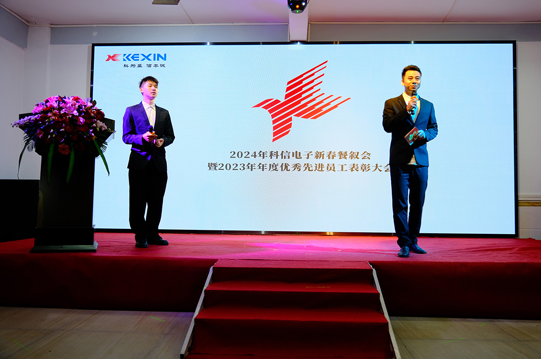 ? ?2024年1月27日,公司全體員工及嘉賓歡聚一堂,舉辦了2024年科信電子新春餐敘會暨2023年年度優秀、先進及工作十年以上員工表彰大會。