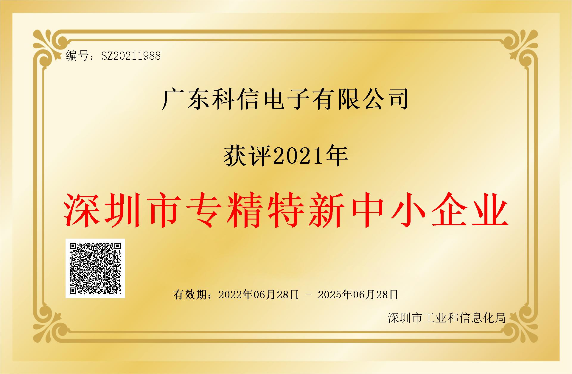 科信電子榮獲“深圳市專精特新中小企業(yè)”